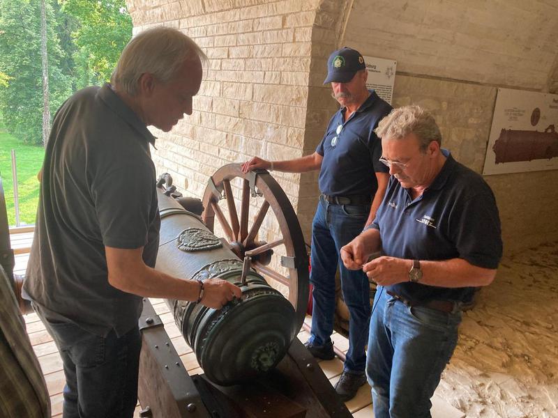 Hier die neuesten Bilder von unserer Kanone auf der Wülzburg vom Reinigungsschießen am 14. August 2025.